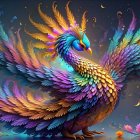 A vibrant, colorful Flightless Bird with intricate feather patterns in shades of blue, orange, and gold, set against a dreamy, blurred background, exuding elegance and beauty.