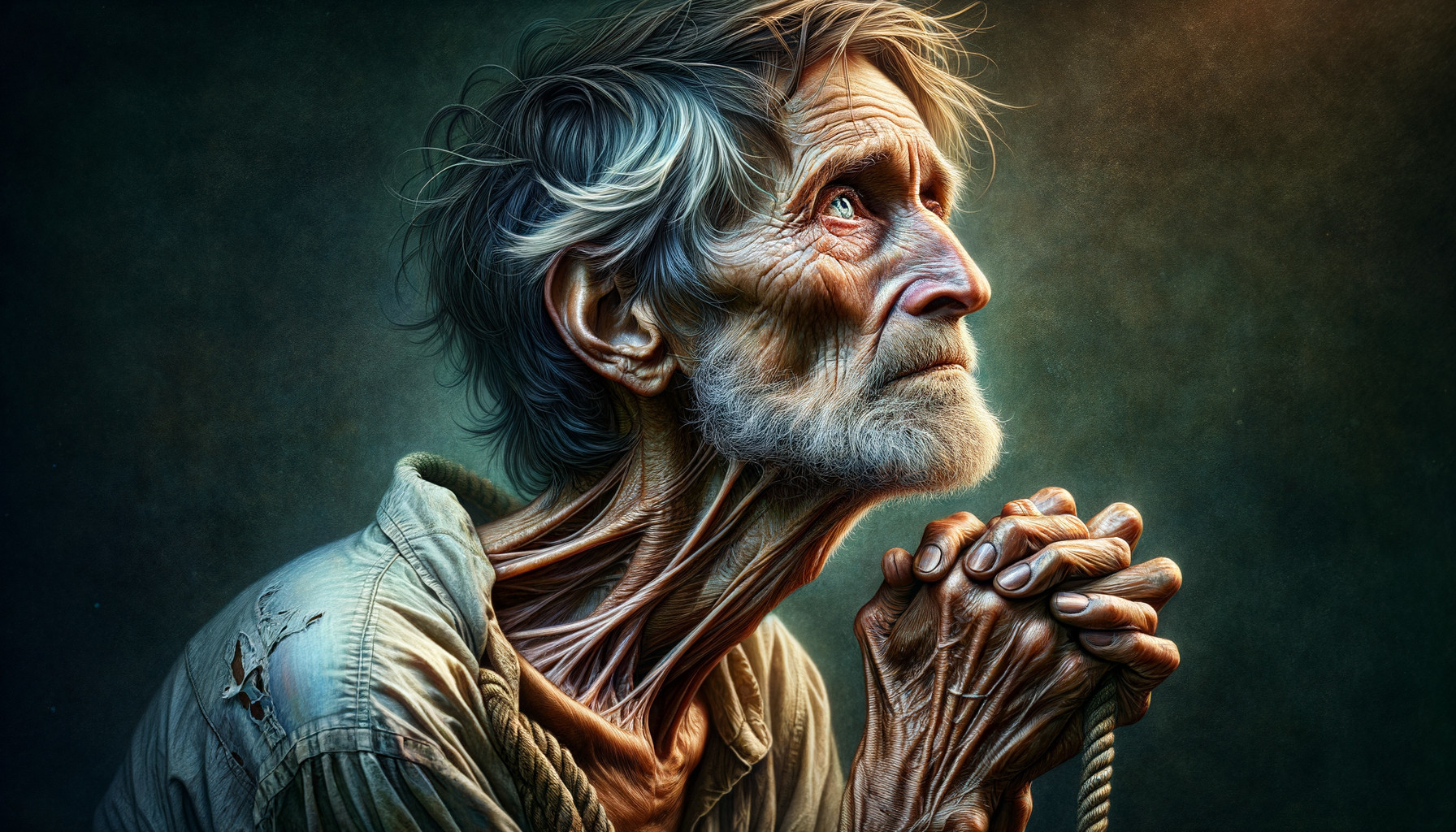 Picture In style of Amy Sherald, Yun Ling, Lucian Freud, Pablo Picasso, Rembrandt van Rijn : a lonely old, barefoot fisherman dreams of catching the biggest fish of his life. The man is thin and tired, his neck is furrowed with deep wrinkles, and the old man's hands are blackened with deep scars from the rope pulling a large fish. They were as old as cracks in a dry desert. Everything about him is old except his eyes, his eyes were the same color as the sea, cheerful and brave, trusting and loving life. The old man's shoulders were powerful, though very old, his shirt was no less patched than the sail of his old ship, and the patches faded from the sun in uneven patches.