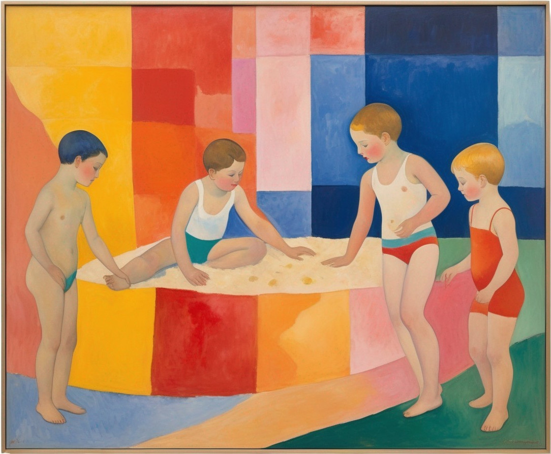 Colorful Geometric Background with Stylized Swimsuit Figures