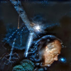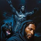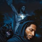 Nighttime Scene with Jesus, Lion, and Starry Sky