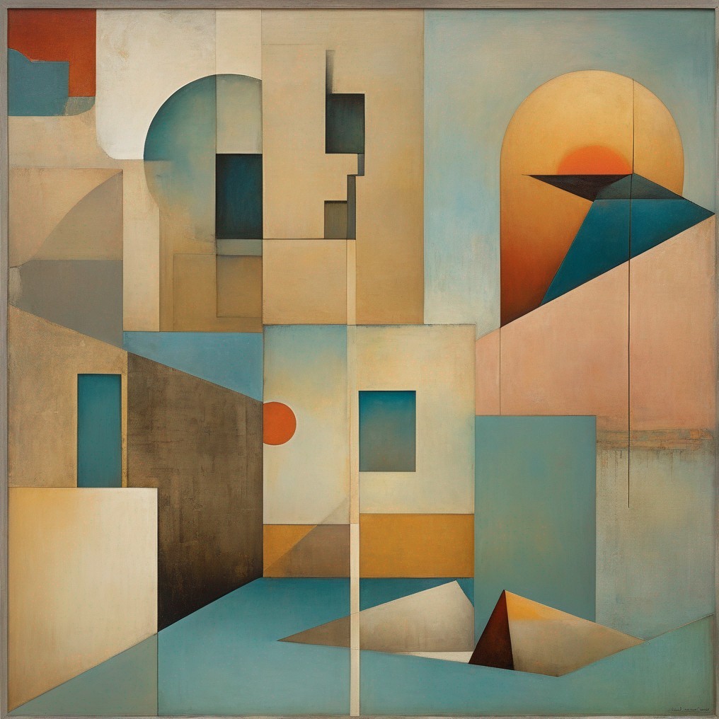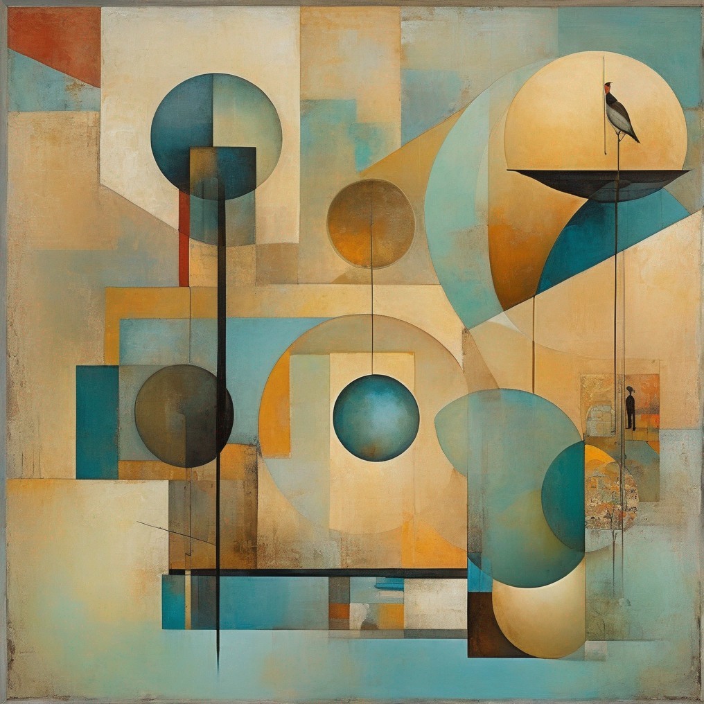 Geometric Earthy Tones Abstract Art with Landscape and Bird Elements