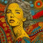 Woman with Blue Eyes and Red Hair in Abstract Art