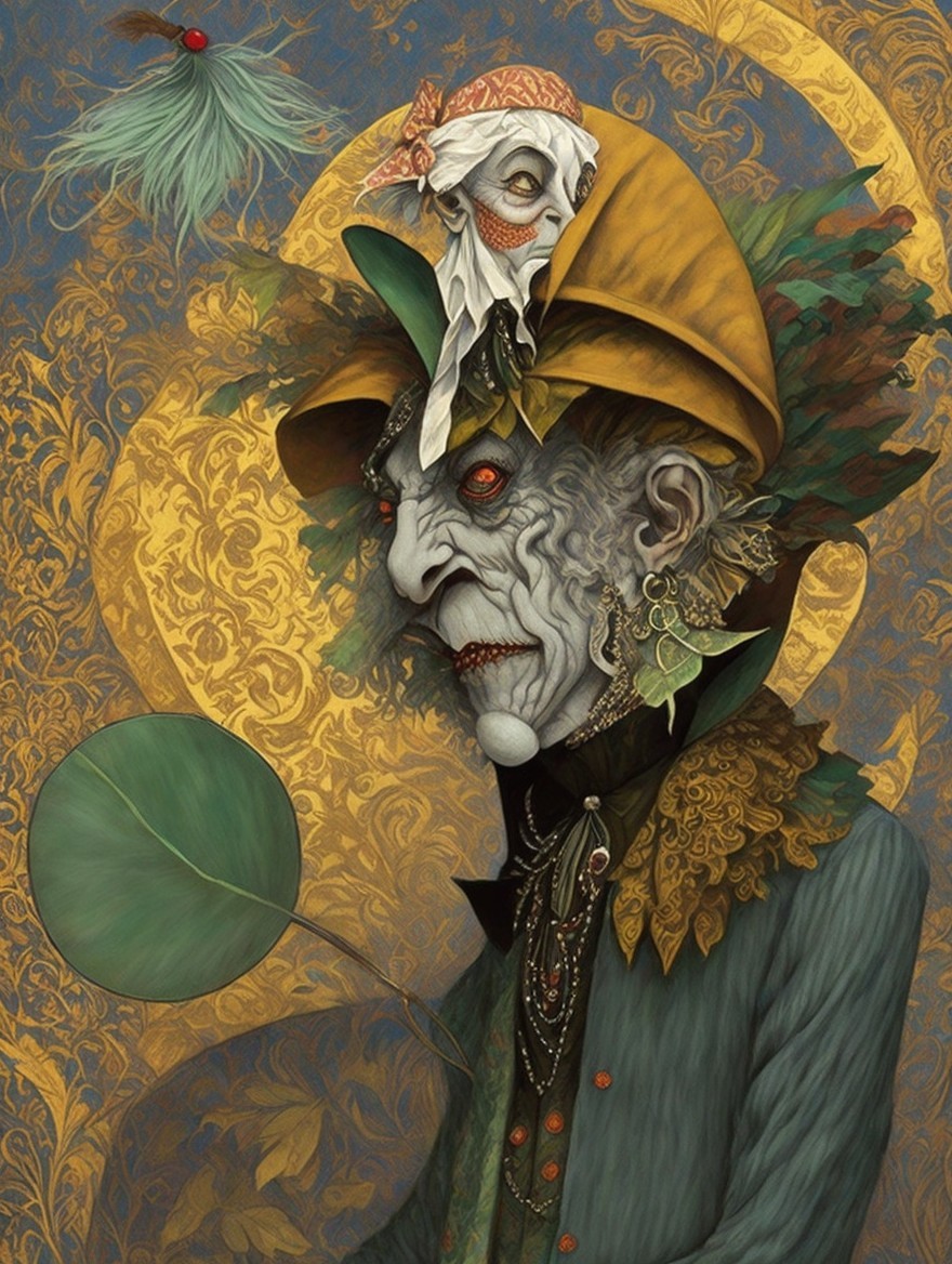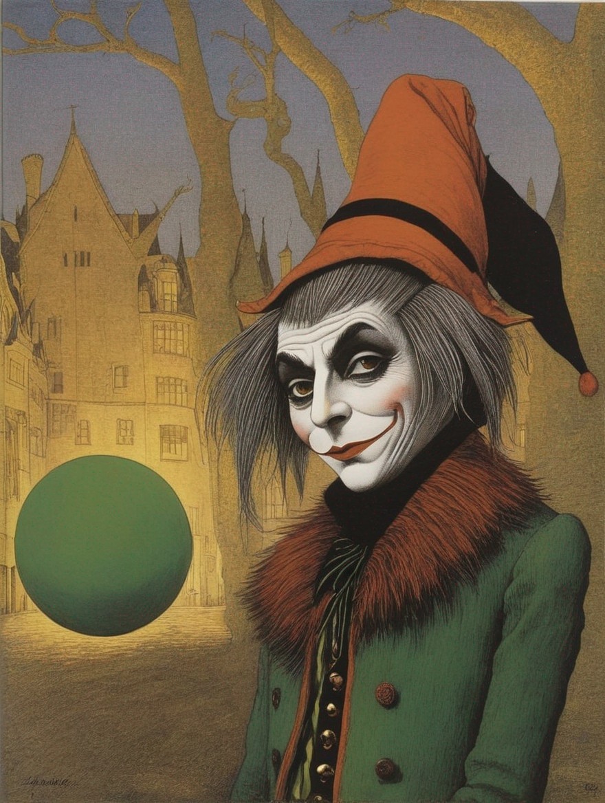 An illustration of a whimsical character with a pointed hat, pointed ears, and a castle in the background.