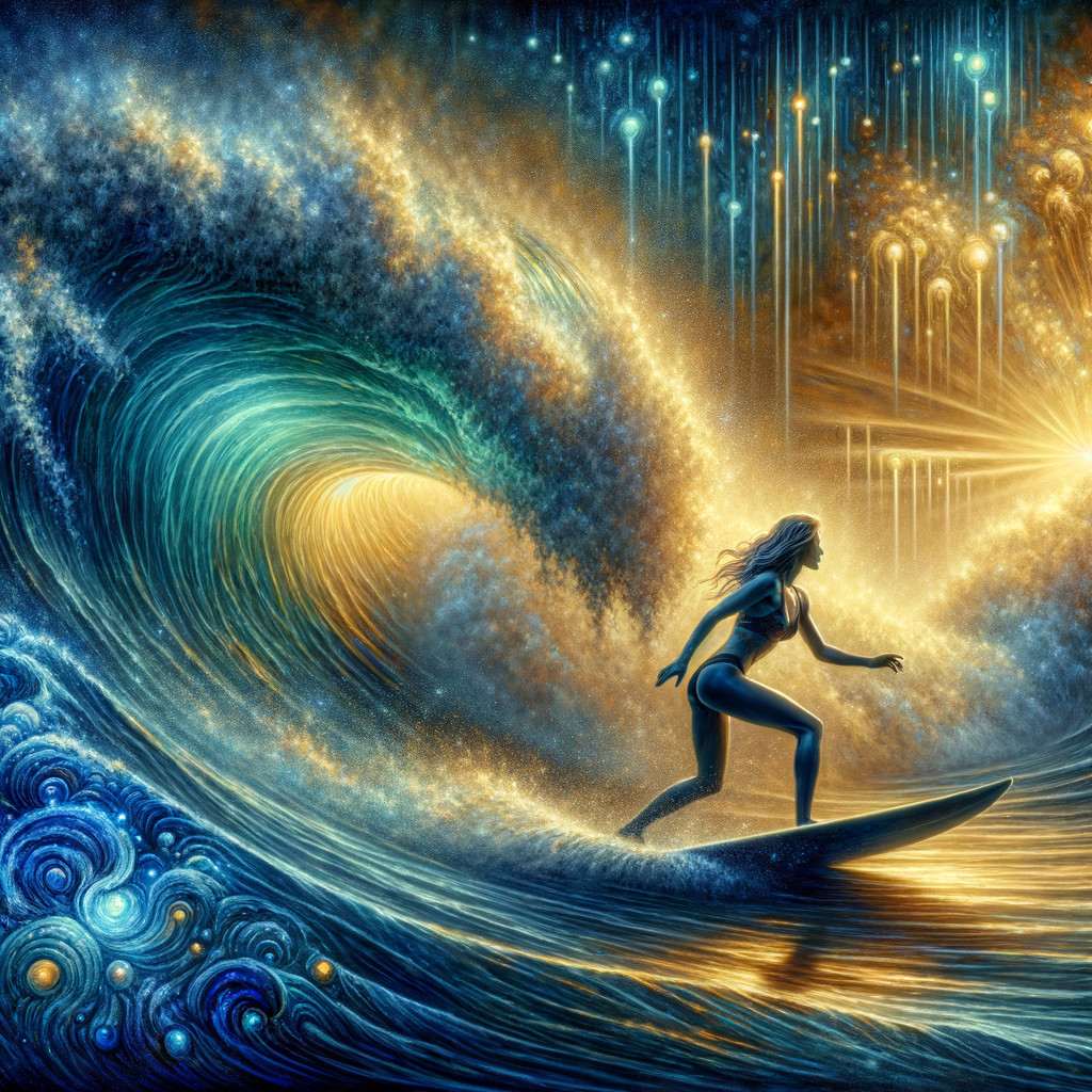 wallpapers.very beautiful, mist, sharp focus Award winning photography intricate 8k dynamic lighting fantastic view 4K 3D crisp quality colourful Ilya Kuvshinov Nicoletta Ceccoli Margaret Keane Sherry Akrami Laura Diehl Zdzislav Beksinski no deformities fit the subjects within the picture frame. image color harmony, bioluminescent highlights and atmosphere mixed media, painting, drawing, acrylic, watercolor wet on silk, dynamic water surfing, stacked design graphics, aesthetic & kinetic vision with an unconventional genius for the art of beauty & illusion, extremely detailed, beautiful blend of cool and warm colors with the golden sun joining the dance.Daniel Merriam art station"
