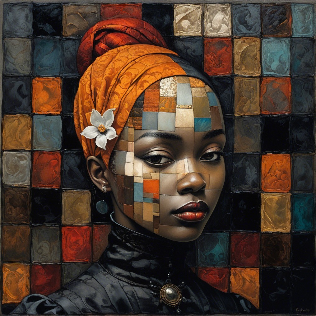 patchwork by Esao Andrews, Kara Walker, DZO Olivier, Arthur Rackham, imaginitive textured a painting of a woman, stylized work of Gothic fantasy, Fantasy Victorian style : : ornate, Aesthetic Gothic, Art Nouveau and Baroque masterpiece, Retro, Vintage, Theatrical mystique, shadow ink, magical, costume, chiaroscuro, moody, Unreal Engine, glossy, gothic fantasy, whimsical, Whimsical lighting, intricate, beautiful fantastic view,