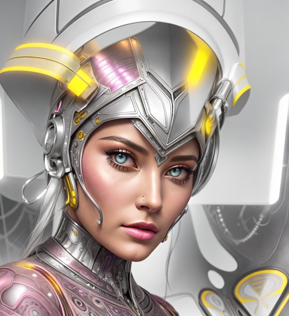 1960s science fiction moviestill, intricate illustration, gorgeous female, beautiful illustrative art, realistic eyes, metallic fittings with Schreger lines, triadic color scheme yellow grey pink, (grisaille ,anatomical details, (metallic texture,, mist, hues, highly detailed background, volumetric lighting), tints of Sci-Fi art 7:3), tints of fantasy style, sharp focus, intricate tinc ornate, tints of 1950s advertising art, vector 7:5, fantasy essence, colorful psychpomp scene, intricate metallic details,  (volumetric lighting, (ochre rim lighting, acid spill 3:5), reflections in pinkish watercolors, steel bars, copper tubes, gilded mechanical fittings, inkpunk, complexion, electrical components, (spaceship interior ( screens, radar screens)1.7,) vintage, mechanical fittings, sci-fi background, beautiful illustrative art
