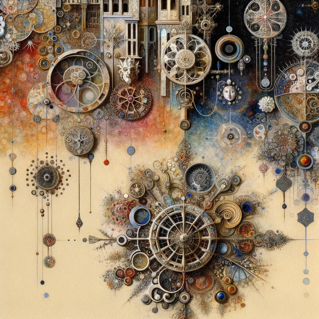 A surreal portrait of a woman adorned with a crown, surrounded by jellyfish and greenery. She holds flowers and a serpent, blending elements of nature and fantasy in a dreamlike atmosphere.