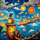 ((A colorful and abstract Masterpiece)), ((A silhouette of a woman is dancing joyfully, positioned slightly left of center, her form filled with floral patterns, primarily green foliage and white daisies. She is in mid-leap, both arms outstretched, one leg bent and the other extended. The background is a vibrant, textured field of flowers and foliage in shades of red, orange, white, and green. Large, spherical orbs with patterned interiors float amongst the blooms, and stylized sunbursts radiate from behind the woman, illuminating the scene. The image is rendered in a semi-abstract style, with a dreamlike, whimsical atmosphere. The perspective is a frontal view, with a high angle, capturing a dynamic scene. Soft, diffused lighting enhances the overall mood, creating an enchanting ambiance. The style echoes Art Nouveau, reminiscent of stained glass or botanical illustrations. The color palette is warm and inviting, evoking a feeling of springtime or a blossoming environment. Hyperrealistic style. Pastel and oil painting), By Mamoru Nagano, Edward Gorey, Joan Miró, Beksinski, Aubrey Beardsley, Catherine Abel, Paul Klee, Tomasz Setowski, Dee Nickerson, Jaceck Yerka.