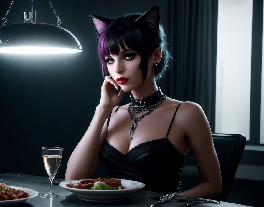Prompt: 1582582:[Photograph capturing the essence of solitude, with an enigmatic table setting and a mysterious cat whispering "nous some perdue." Inspired by Ellen Von Unwerth's fashion photography, with a touch of cyberpunk aesthetic. Ultra-realistic portrayal, sharp focus, cinematic lighting, 8k resolution, trending on artstation]{sharp focus fantasy fantastic view ultra detailed naive art naoto hattori Catrin Welz-Stein Stephen Gammell Dee Nickerson 252525 Makoto Yukimura art design Bill Reid }{a masterpiece; 8k resolution; trending on artstation; maximalist; uncanny; highly detailed and intricate}{surreal splash art, pale translucent skin, hi-res, photorealistic, Nikon Z9, 85mm F1.2, DOF, smooth and realistic HDR}]