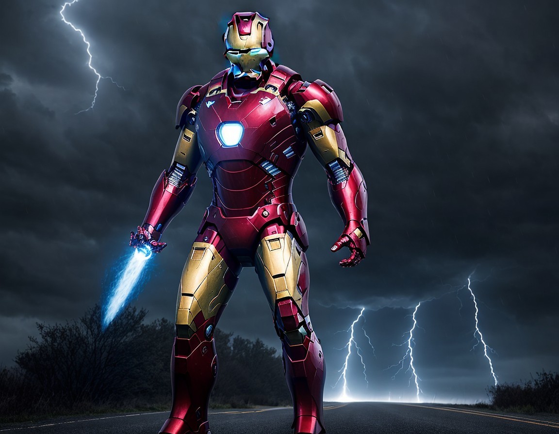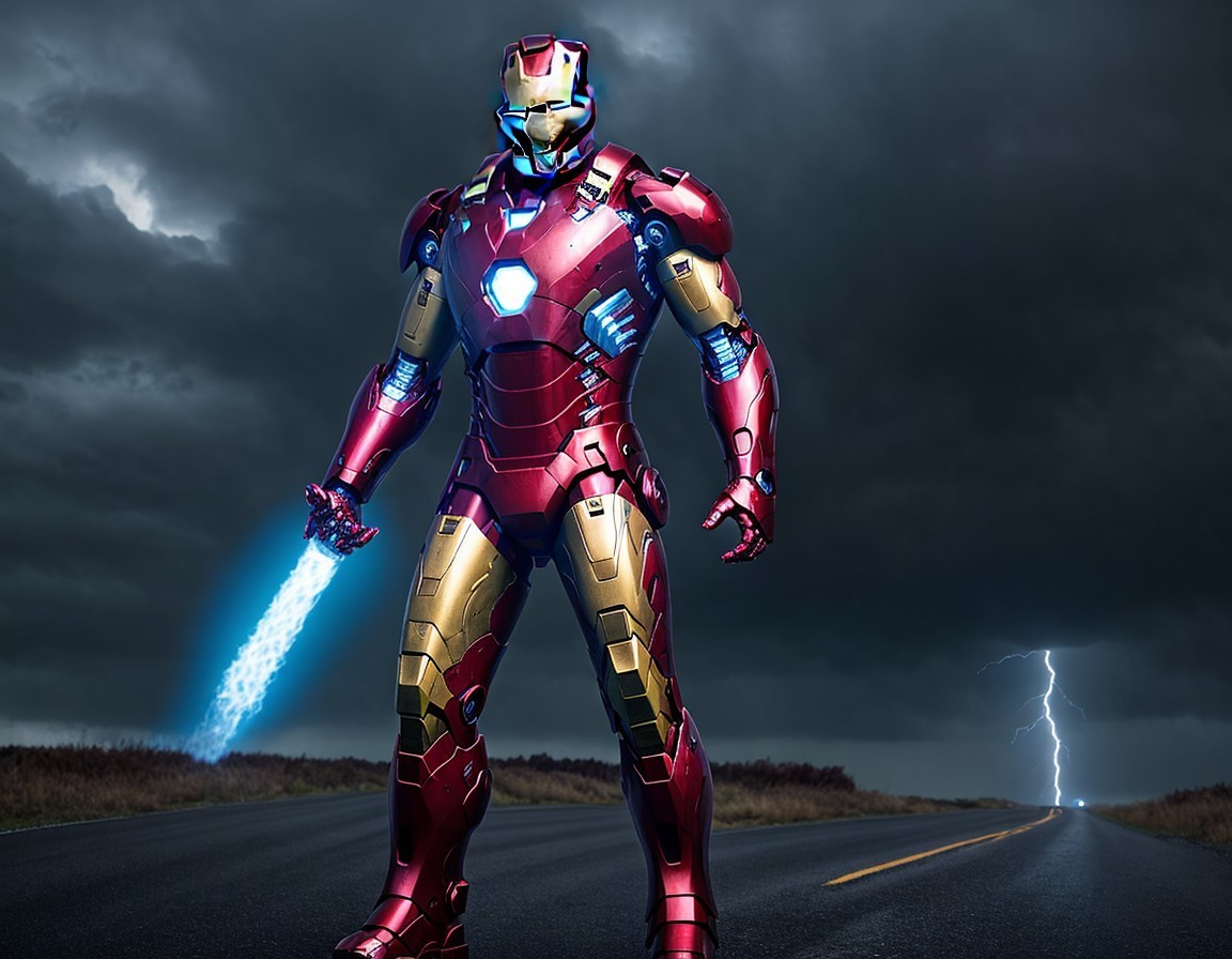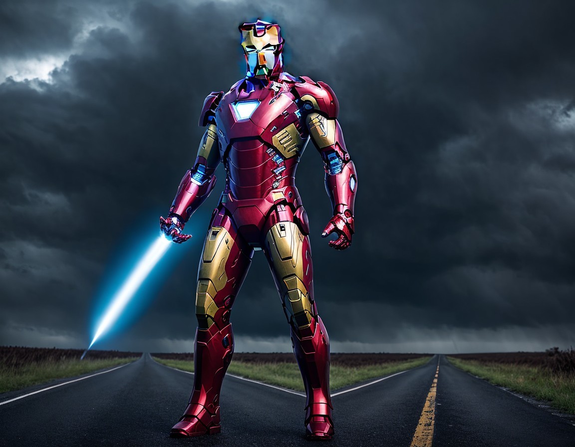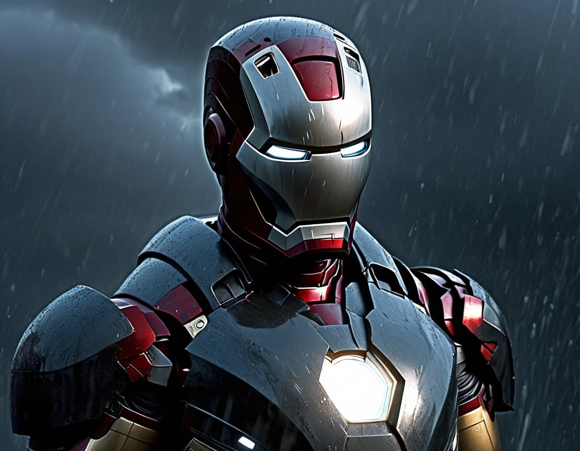 Prompt: "Iron Man, heavily armed Like a statue he stands, silent, unchained Once a man, now a machine A soul lost, in an iron prison Iron Man, a demonic entity Dark angel, fear and terror Walks alone, on an unknown road Iron Man, without a past Under the rain, in a storm He stands still, defying everything Nothing touches him, nothing hurts him Only loneliness, an eternal wound Once he dreamed, once he loved Now only silence, only emptiness Iron eyes, lifeless gaze No tear, no emotion Iron man, no past Iron man, eternal loneliness Iron man, a tragic story"