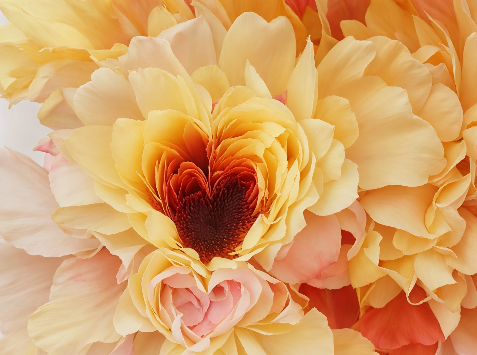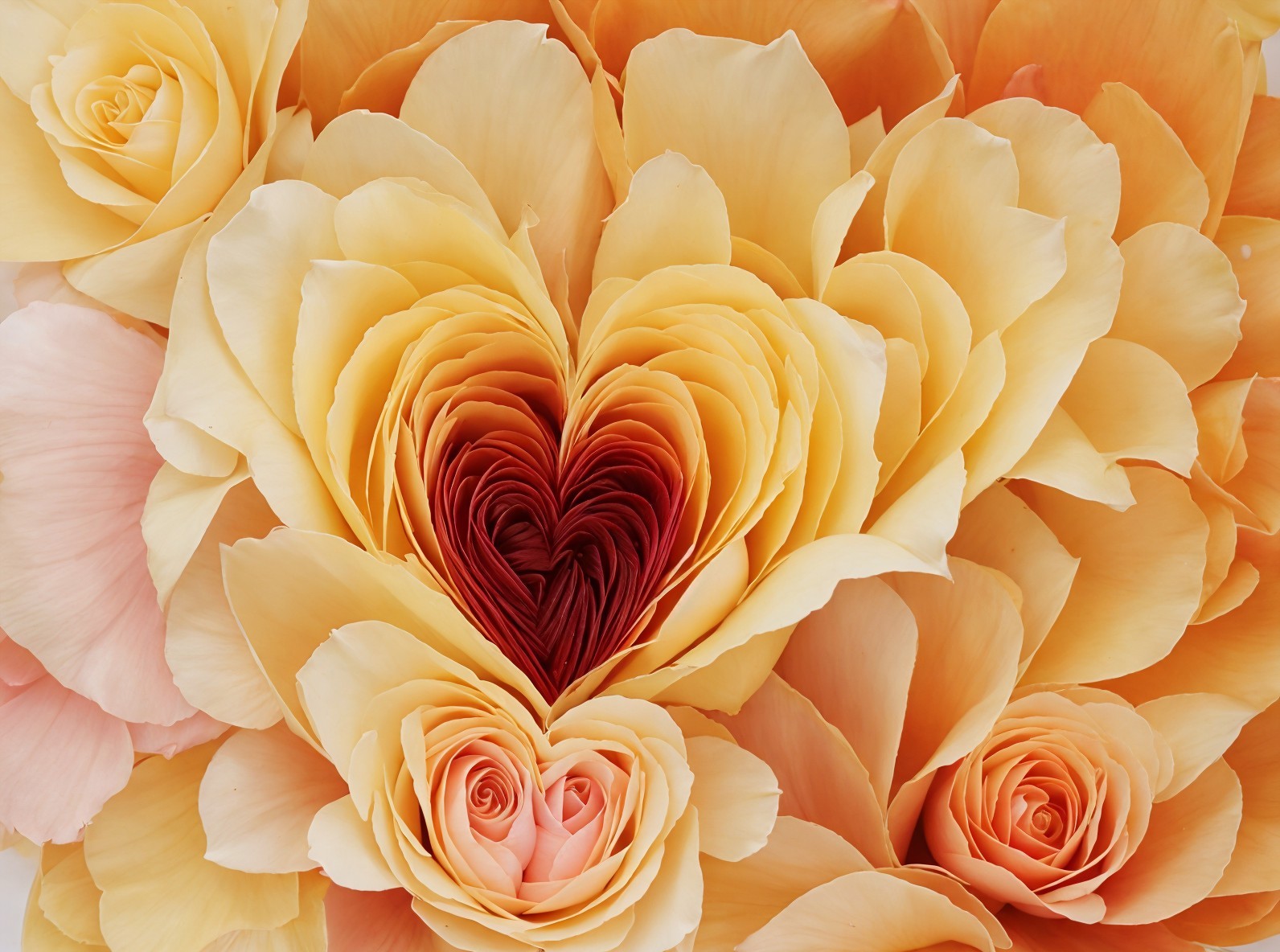 Peach-Colored Roses Close-Up with Heart-Shaped Petal