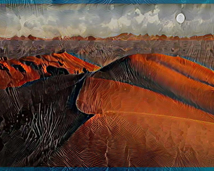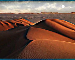 The moon rises slowly over the Namib desert dunes