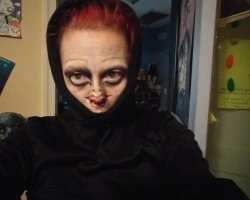 A weird practice SFX makeup look I did on myself. The "mouth" is actually on my nose & the "nostrils" are on the bridge of my nose. Style is made from 3 dreams & a photo of a corner of our livingroom.
