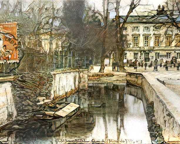 Old canal of Mussy-sur-Seine with Anton Pieck style
