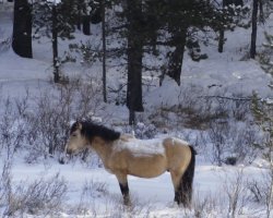A Sundre Wild Horse—Dream created using own photo and Julius von Klever's Approaching Blizzard as a style.