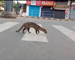 Nature vs. Coronavirus - Part 1: Animals (4/5): An Indian civet crossing the street in Meppayur Town, India