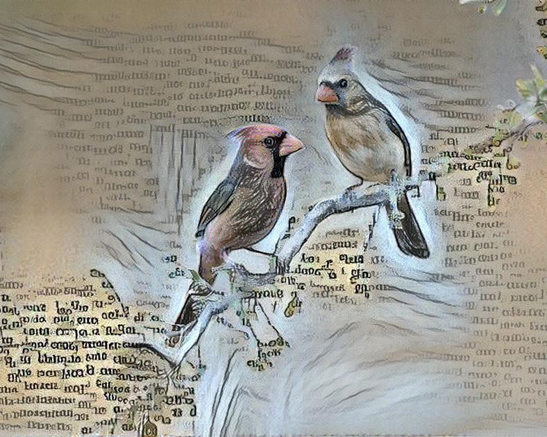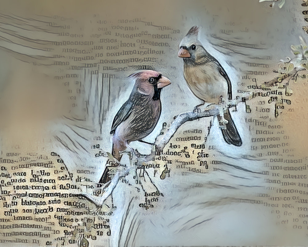 Book page cardinal birds on tree