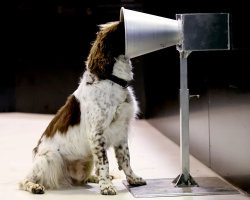 A dog being trained to Sniff out COVID-19 in humans. Really.