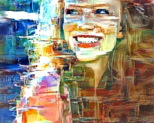 redhead model smiling into sunshine, painting