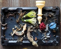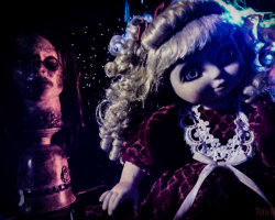 A photo I took of an old dolly & a zombie head I made. I apologize- I don't remember who I got this style from