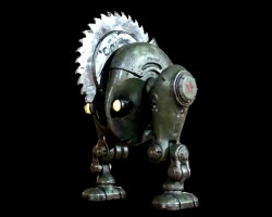Atomic Heart robot in a metallic/fractal style