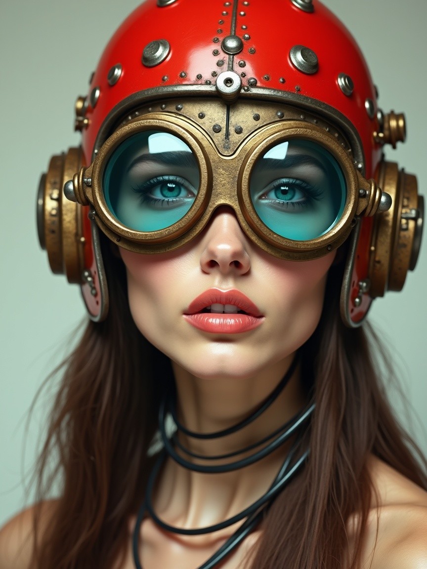 Prompt: A masterpiece of conceptual aestheticism with elements of dualistic worldview. A portrait of an absolute beauty. A light gold background with multicolored sparkles.