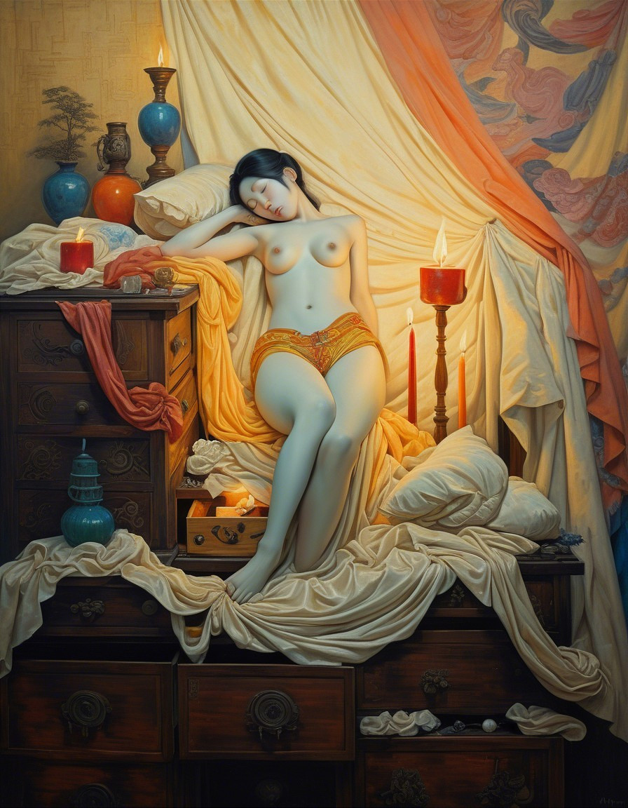 Prompt: by Gustav Klimt, Lucy Grossmith,gorgeous beauty,féminity and grâce,,glamour and aesthetic ,dark midnight blue,Beautiful Woman :: by Russ Mills :: rendered in a mix of Russ Mills' signature blend of atmospheric, abstract-expressionist brushstrokes and ink / pencil painting details, mix media style,in the style of Luis Gabriel Pacheco, Jean-Baptiste Monge, Harry Clarke, Agnes Cecile, Anna Sui and Richard Burlet,Avant Garde fantasy. Vintage Autochrome. Full body Dancer wearing voluminous elaborate costume made of intricate vintage cream lace, covering whole body. A headdress obscures the face. A white crocheted crown on their head. Dark brooding background. Otherworldly. Autochrome. Hazy. Blurred.gorgeous beauty,féminity and grâce,,glamour and aesthetic, A solitary gorgeous woman in a vintage dress, surrounded by an ethereal swarm of oversized, luminescent butterflies. They are standing in a sun-dappled meadow that seamlessly transitions into a surreal, dreamlike landscape. The atmosphere is thick with a sense of melancholic wonder. The style blends the intricate detail of photorealism with the whimsical, unexpected juxtapositions of surrealism.<lora:CorvidiconFlux:1.0> <lora:Dark Art:1.0><lora:Echoform Oxymoron:1.0> <lora:PetalsGrave:1.0> a colourful beautiful cool delicate ethereal melancholy young Gothic woman with red hair moonlit abstract coldwave darkwave postpunk Macabre Dark Romanticism Renaissance PetalsGrave sepia gothic refined elegance wabi-sabi elegance ink-dripped blossoms,gorgeous beauty,féminity and grâce