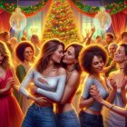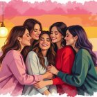 Prompt: Vibrant and detailed comic-style artwork, intricate linework reminiscent of George Perez, colorful ink drawing, characters inspired by Fiona Staples, influences from Wally Wood, Al Williamson, Joe Orlando, Bernie Krigstein, Reed Crandall, Jack Davis, and Johnny Craig. A female couple with short red hair and long black hair, embracing under a grand tree in the moonlight. Background features rolling hills, a full moon shining brightly, both women dressed in rainbow skirts and white tops. Theme of love and LGBTQ romance portrayed elegantly. Include small birds and furry animals adding a touch of whimsy and nature.