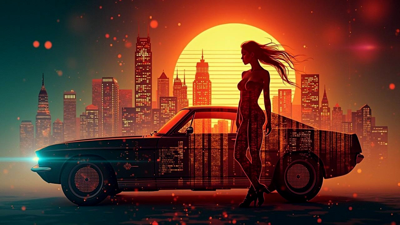 Prompt: Masterpiece, a multi-block color woodcut and linocut print in a bold, graphic style. A striking Aziatic female figure stands confidently, her form defined by a sharp, black key block of flowing, precise lines. Her long, flowing red hair is a cascade of vibrant, solid crimson shapes, separated by deep grooves. She wears a form-fitting red bodysuit adorned with golden grid lines that are meticulously carved into the block, creating a pattern of metallic precision against the bold red. In her right hand, she holds a glowing sphere, rendered as a concentric circle of warm, translucent yellow and orange inks, casting a luminous glow that contrasts with the cool background. Her expression is serene and enigmatic, carved with minimal, elegant detail to invite curiosity. The background is a vibrant, abstract field of geometric shapes in emerald green and cobalt blue, printed as flat, interlocking planes. The overall composition captures a balance of mystique and boldness, emphasizing her powerful presence through the high-contrast, modern aesthetic of the printmaking medium. Graphic style, linocut, woodcut, key block, bold outlines, flat colors, geometric, modern, atmospheric, high-contrast, stylistic.