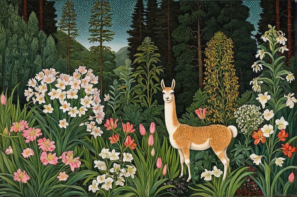 Prompt: Mystical atmosphere flower meadow with two little fairy and a little cat, intricate floral patterns, shimmering gold accents, mosaic patchwork background, soft watercolor textures, wet on wet technique, Klimt-inspired style, rich color palette of gold, red, and green, elegant and dreamy ambiance, Gustav Klimt's artistic flair, Artstation, high resolution for detailed brushwork and textures.Vibrant Christmas tree, ethereal and delicate, snowflakes floating in the air, shimmering like stars, night sky backdrop, deep indigo and purple hues, glowing specks of light, magical and dreamy atmosphere, close-up focus, intricate details, digital painting, whimsical and enchanting style, fantasy elements, soft and mystical lighting, Aurora's prompt, evoking a sense of wonder and magic, Artstation.
