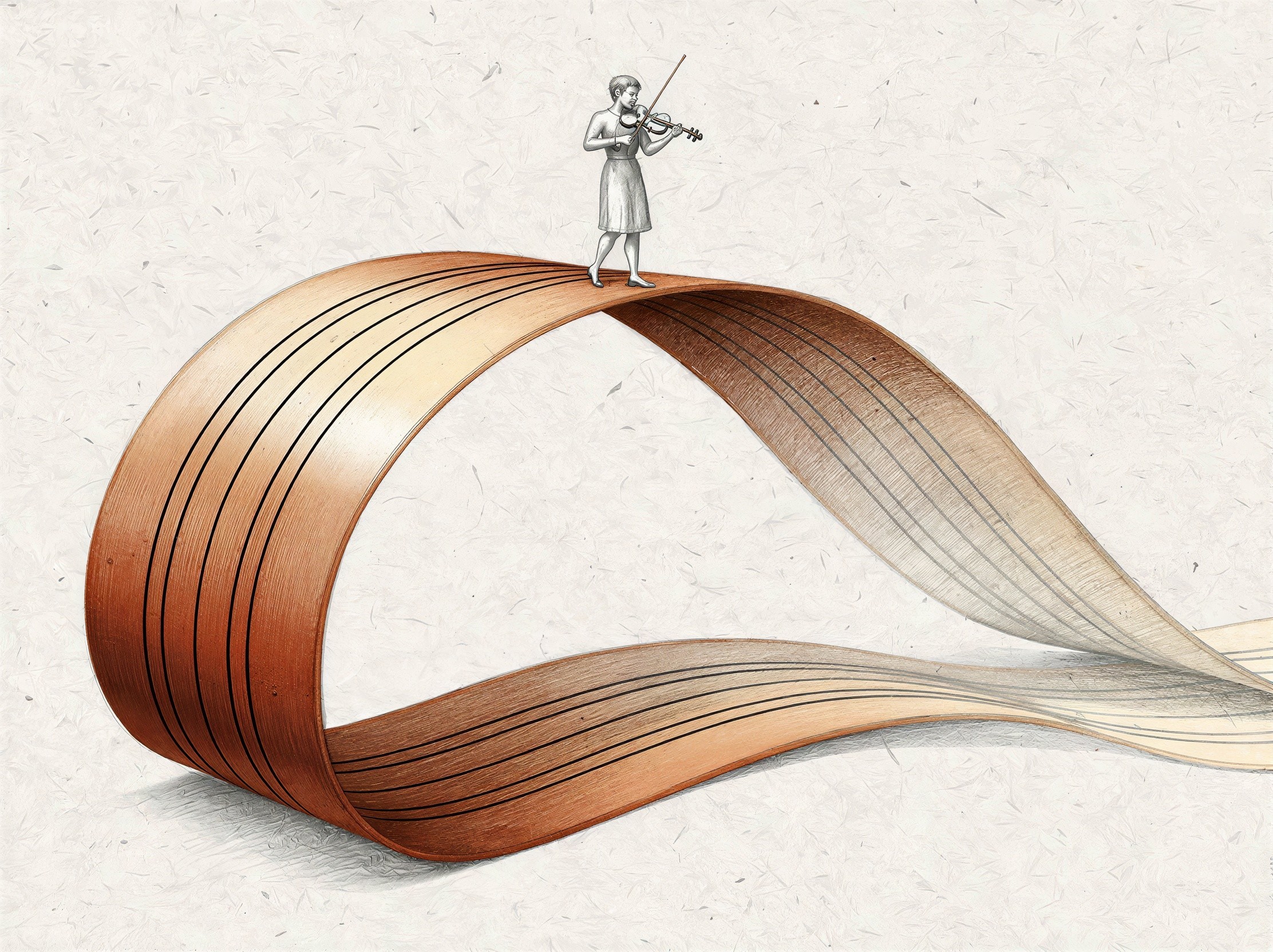 on the surface of the ribbon there are exactly five thin black parallel lines,
