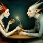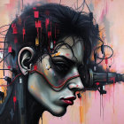 Prompt: Female shaman. Witch of the demon cat. orb and gems. City noir retro-futuristic nostalgia evil. Evil. Evil eye levitating. Paul Klee inspired, a mix of photorealistic Dave McKean art collage and absurdism patchwork. wonderful metallic paints. made of paint and newspaper clippings. Cubism horror. Even more evil than previously mentioned.