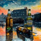 A surreal landscape featuring towering, intricate structures surrounded by a mystical atmosphere. Two moons illuminate the scene, with rocky formations and a reflective surface enhancing the dreamlike quality.