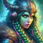 Fierce Warrior with Green Hair and Elaborate Armor