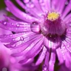 A vibrant, abstract flower blooms in shades of purple and blue, with swirling textures and fluid patterns. The dynamic colors create a sense of depth and artistic movement.