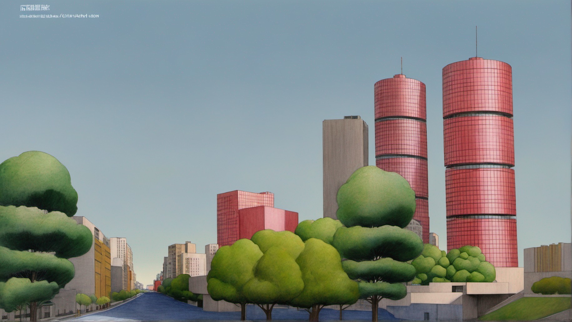 an illustration of a high-rise architecture of a city in Brave New World by Aldous Huxley
