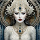 A vibrant, stylized cat portrait featuring intricate patterns in bold colors. Its large, expressive eyes stand out against a swirling backdrop, creating a striking and playful design.