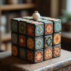 Vibrant Cube Ornament with Intricate Patterns