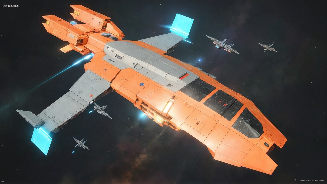 digital illustration. watercolor & ink. a symmetrical futuristic hi-tech spaceship firing advanced weapons systems, laser turrets, miniguns, and missiles, flying in a planet's orbit in the background, 64k, cinematic colors, cinematic lighting, hyperrealism, photorealism, sci-fi art, sci-fi illustration, uber realistic, ultra high resolution, enhanced imagine, sharp focus, intricate detail, dark theme, masterpiece