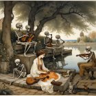 Skeletons Playing Instruments in Serene Outdoor Scene