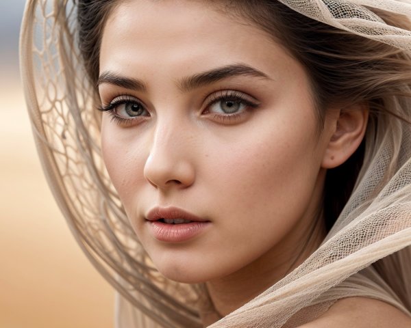 A woman in a flowing red dress stands in a modern, dimly lit room, gazing at a vibrant cosmic mural of swirling galaxies and stars, illuminated by sleek, bright wall lights.
