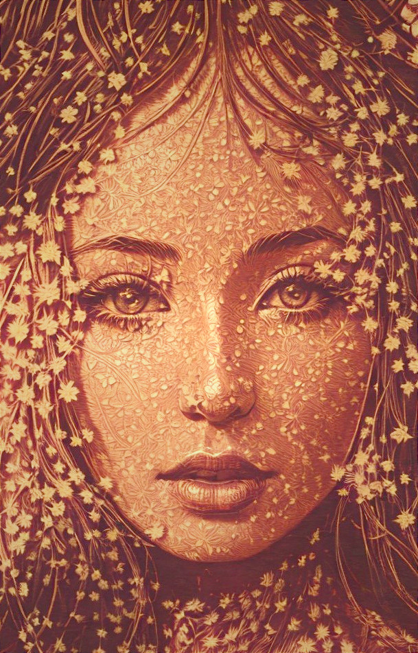 Woodblock print 1.7, close-up portraiture, beautiful female face, stylized illustration 1.9, grain, 3d effects, brightness 1.9, ambient occlusion 1.5 saturated colors 1.8, soft edges, crisp lines, lineage details, vibrant occult mood, glossy highlighted strokes on old paper, radiance, hues, devilish eyes 1.7, ghostly appearance, dark rim lighting 1.7, 3d effects, raytraced shadows, anisotropic filtering 1.9, Abstract, complementary textures, granular surface structure textured, overlays, sgraffito, dry brushing, scumbling, impasto, frottage, wavery stenciling, raytraced shadows, high coloring, contrast colors, facial expression by Margaret Keane, daguerreotype photography style, smooth crackles, volumetric lighting 1.7