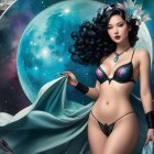 The image features two characters with striking red and black hair, dressed in edgy outfits. One wears a leather jacket, while the other sports a bold bikini and gloves, set in a moody, industrial backdrop.