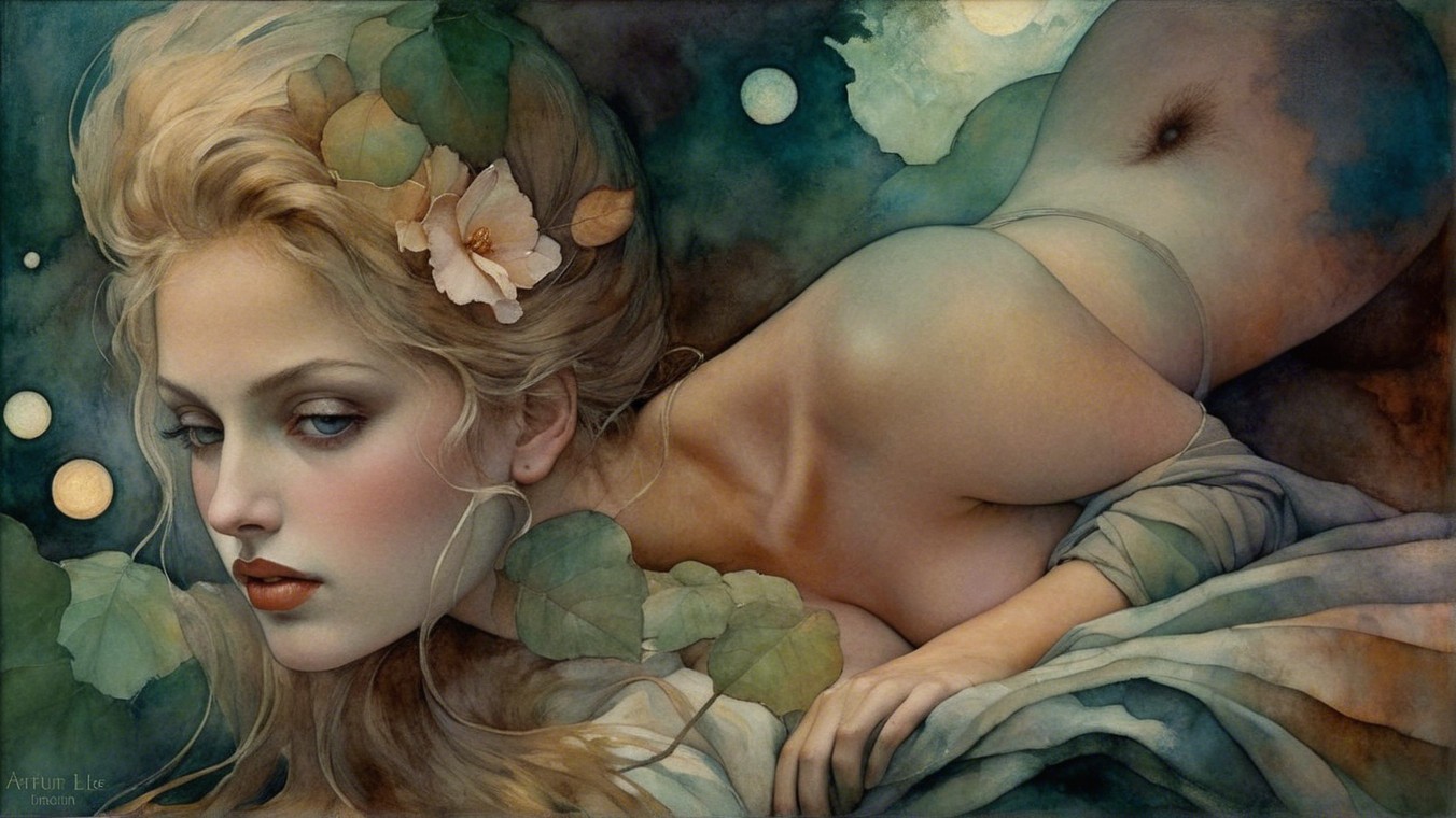 elegant extremely detailed fantasy intricate oil on canvas beautiful dynamic lighting award winning imperial colors fantastic view hyperrealistic crisp quality Dark Fantasy Gothic Gustav Klimt romantic whimsical anatomically correct Michael Parkes, Loui Jover, enchanting, ethereal, otherworldly, dreamy* magic realism* enigmatic, mystical, mysterious* shades of blue* golden rain and dragonflies* beautiful elegant intricate fantasy oil on canvas extremely detailed