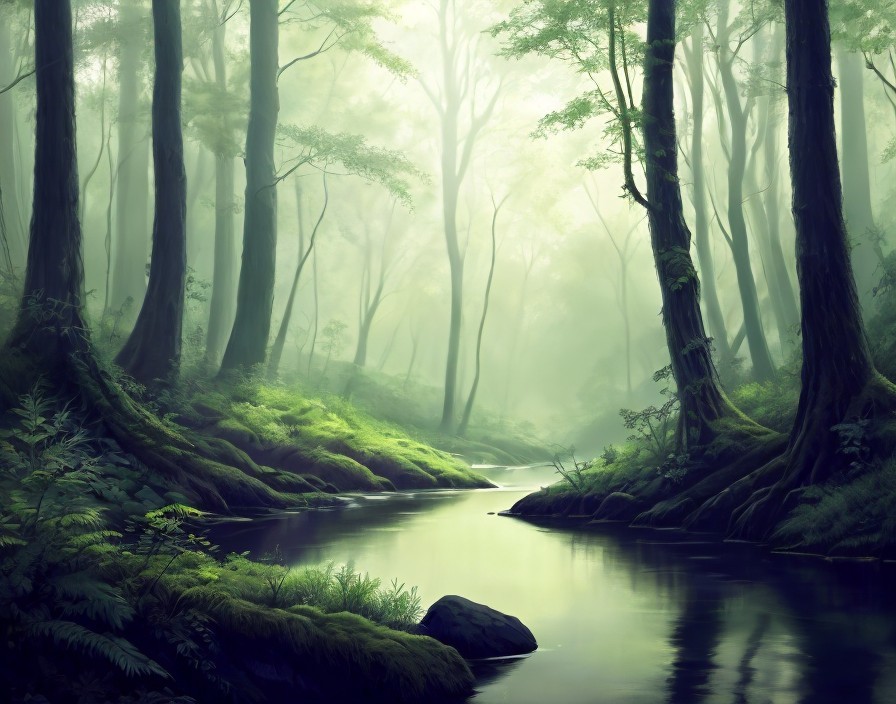 Prompt: black silhouette of an angel sitting at the edge of a calm stream in the forest :: black brown and deep dark green theme, 8K, extremely detailed, hyperdetailed, airbrush art, beautiful, award winning, crisp quality, digital art, pencil sketch, mixed media