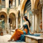+ Prompt:A masterpiece of unparalleled excellence)), ((( beauty sitting in an ancient courtyard scene in the style of John Frederick Lewis ))), Stunning watercolors, Pen and Ink, Pencil drawings, as if created by Michael Parkes, Arthur Rackham, Ernst Haeckel, Gustav Klimt, Jean-Baptiste Monge, Kandinsky, Tim Burton.: intricate 8k very attractive wallpaper hyperrealistic ultra detailed high definition colourful Ultra realistic Alexander Jansson 8k intricate very attractive intricate