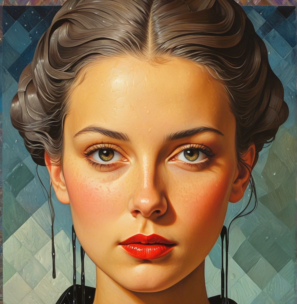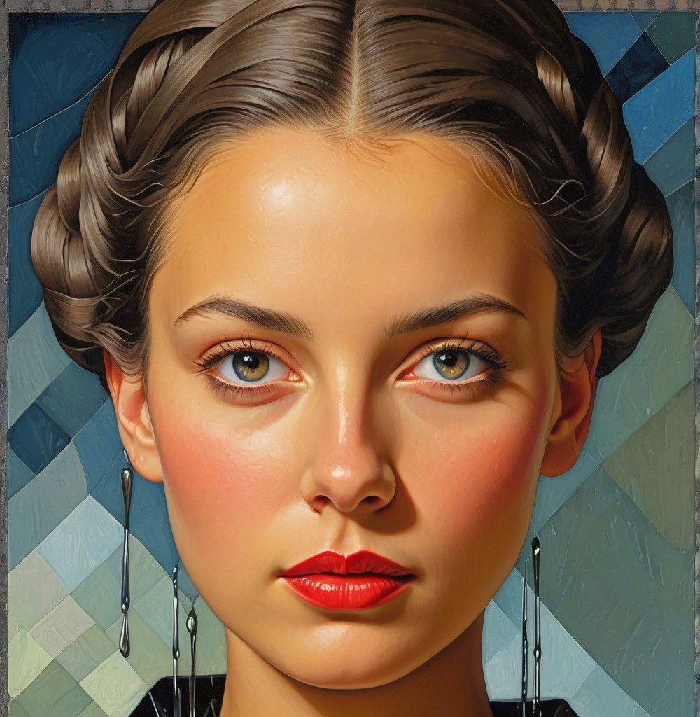 Vivid twilight glow, ethereal dreamscape journey,Surreal wet-on-wet painting, Intricate linework, stylized patchwork, tessellated, plasticity, headshot portrait, prismatic tilting stylized lineage illustration. Gouache details by Earl Moran, Gothical, 3d effects 1.8, ambient occlusion 1.5, darkened stylized portrait with textured background. American Gothic blended with stylized fractalization 1.2, splash ink, abstract pop surrealism by Tom Bagshaw & Dr. Seuss & Ralph Steadman & Man Ray, Unreal Engine, cinematic realism, 64K, precise Gelsculpt, Novelty architecture, High Octane Render, anatomically correct features, UHD, HDR, realistic rendering, AIVision model,dark gothical portraiture, foampunk merged with dark fantasy style, terrible, atrocious,simplistic, rule of thirds, hideous, dappled lighting, grimly, bloodcurdling, frosty, harrowing, serene, stylized,intricate, balanced coloring, very smooth complexion, highly surreal psychedelic realm, mesmerizing light shifts, liquid-like essence, stylized interpretation, fusion of collagraphy and linocut techniques, intricate line-art elements, captivating dramatic lighting, foreground in razor-sharp focus, 3D background with swirling patterns, zentangle influence by Frank Frazetta, acrylic masterpiece, inspired by Georgia O'Keeffe and Ho Baron, reminiscent of Man Ray and Frank Miller, lighting akin to William Turner and Dee Nickerson, meticulous and shimmering details, moonlit ambiance, vibrant and illuminated color palette, a magical and enchanting visual narrative.stylized woodblock print by Earl Moran. Hues by Georgia O'Keeffe, portrait features, intricate, balanced coloring, very smooth complexion, highly detailed, subtle, stylized details against a geometrical backdrop reminiscent of American Gothic merged with comic book art. Maximalism, rule of thirds. Plasticity 1.3, intricate geometrical patterns, solid shapes, circles, and bold brushstrokes, with minimal curves and fantasy fusion elements.Intricately textured