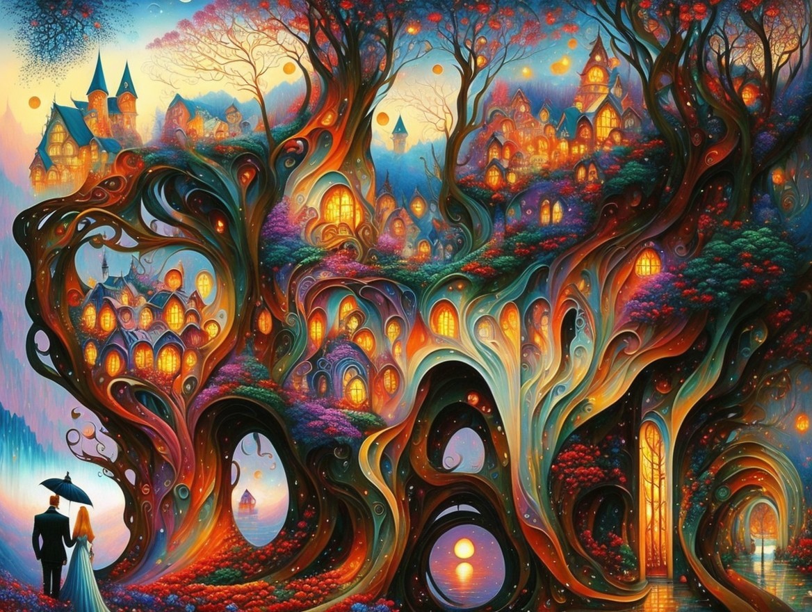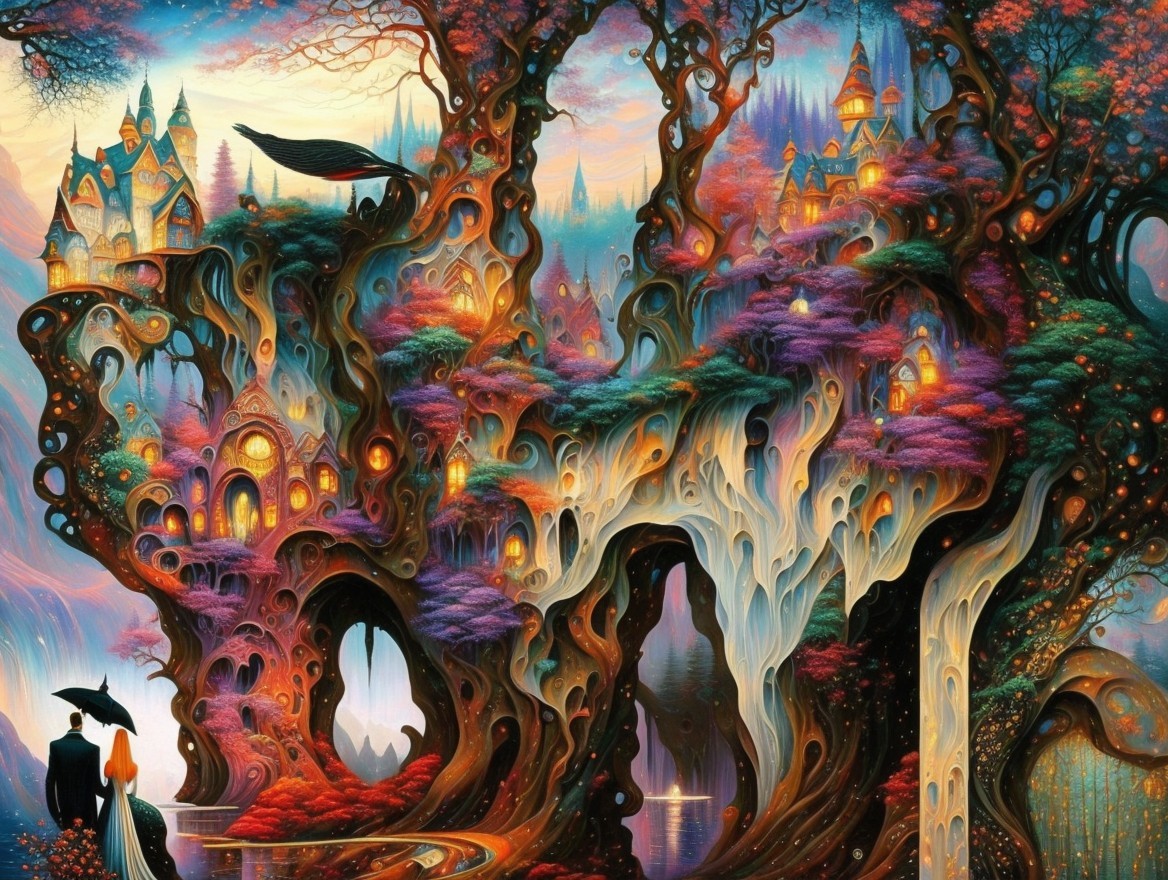 Vibrant Fantasy Artwork of Whimsical Tree Homes