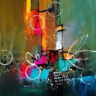 A serene figure in a colorful kimono sits on calm water, holding a sword. The backdrop features a glowing red sun, creating a striking contrast with the tranquil scene and her elegant pose.