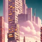 The image depicts a surreal landscape with towering, futuristic structures resembling giant, bulbous buildings. In the background, planets float in a pastel sky, adding to the otherworldly atmosphere.
